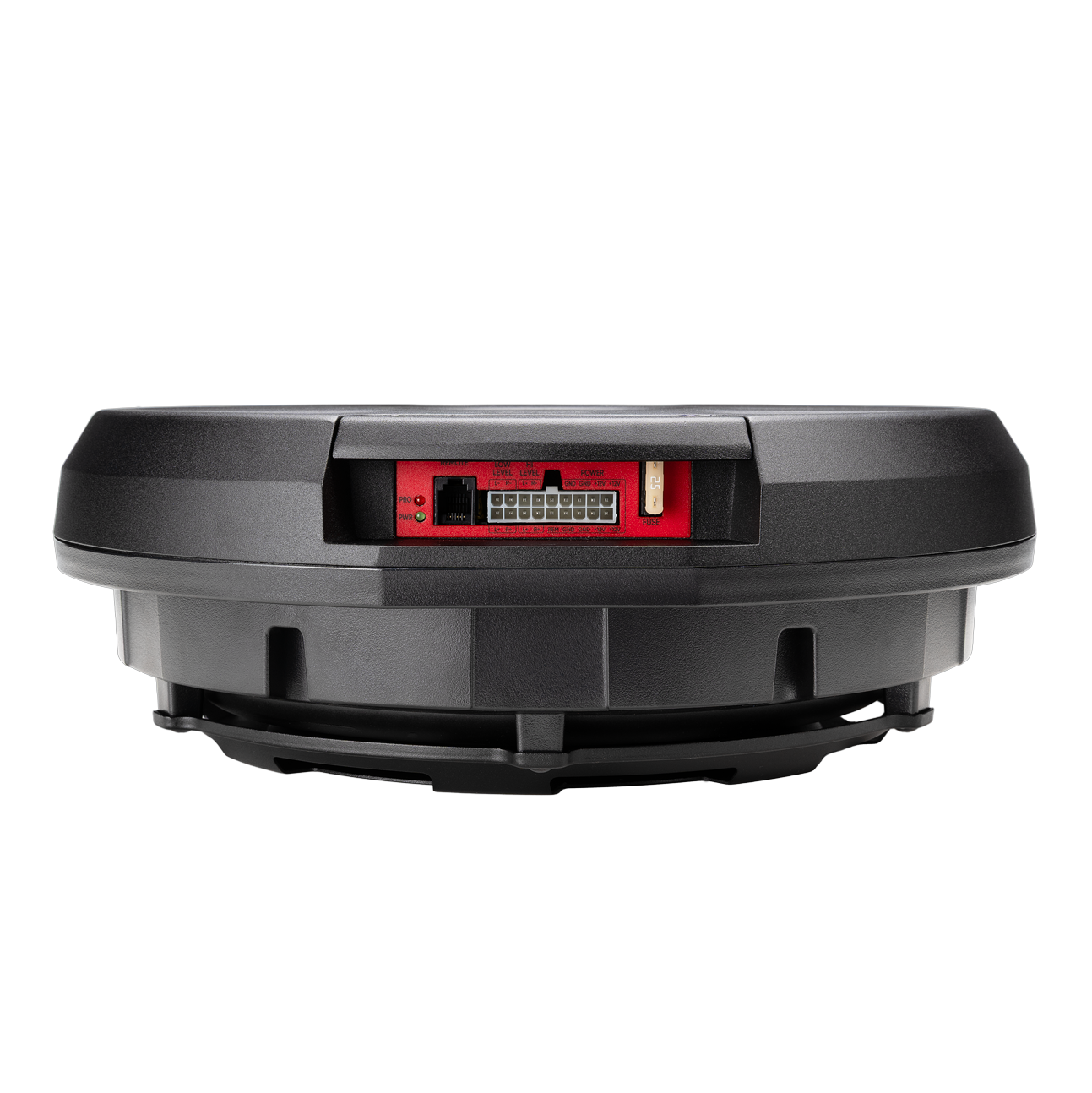 Im Inneren des extra flachen Gehäuses arbeitet ein 28 cm (11″) Langhub-Tieftöner, der durch seine extrem steife Edelstahl-Membran besticht. Für eine optimale Abstrahlung und gleichmäßige Verteilung der Basswellen ist der Woofer ist nach dem Downfire-Prinzip montiert. Angetrieben wird er von einem integrierten Class-A/B MOS-FET Verstärkermodul, das satte 150 Watt RMS an 2 Ohm liefert. Das Ergebnis ist ein präziser, druckvoller Bass, der das Klangbild Deines Fahrzeugs massiv aufwertet.